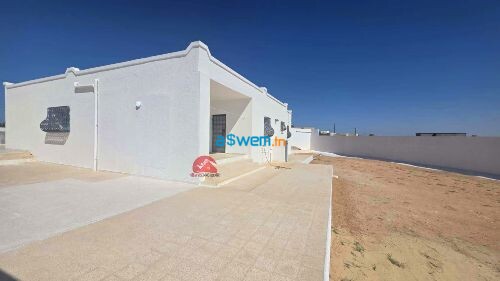 A vendre une maison récente de plain pieds qui couvre 201 m², projetée sur un terrain avec titre bleu individuel de 1782 m² à Houmt Souk "Oualegh" Djerba.